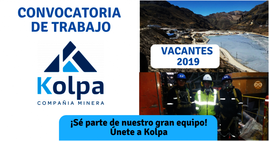 Vacantes actuales para trabajar en Compañía Minera Kolpa S.A. son los siguientes: