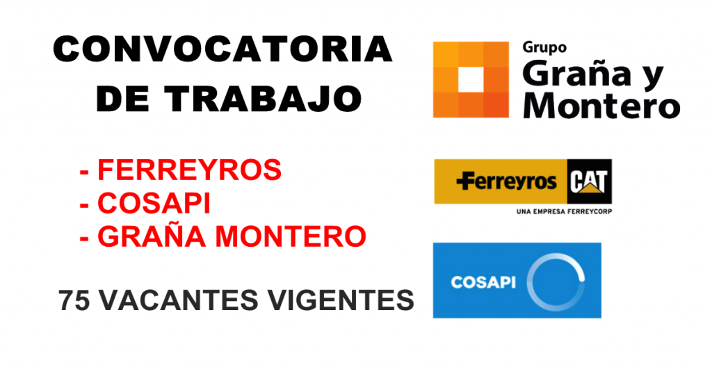 Cosapi: dispone de 16 vacantes para los departamentos de Lima, Ica, Huanuco, Moquegua, Puno y piura si vives en uno de los lugares mencionados tendras mas posibilidad para ser contratado.