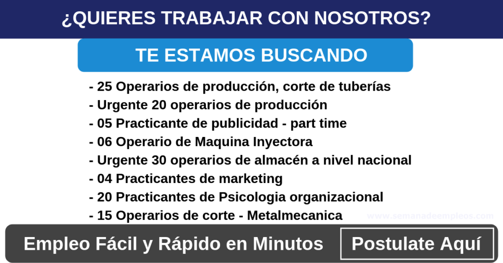 De estar interesado en las vacantes, pueden presentarse en la direccion AV. Jose Carlos Mariategui Mz A Lt 03 – Nº 792, referencia municipalidad de Ate, llevar sus papeles en regla. También pueden revisar toda la información completa desde: Postulate ahora.
