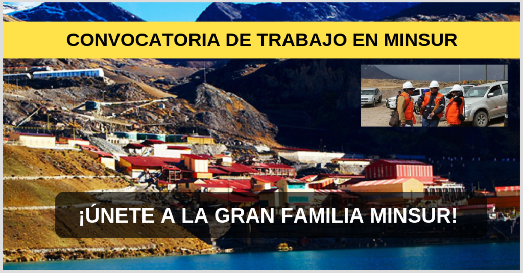Minsur actualmente es considerado una empresa minera de éxito, que es referente en seguridad y cuenta con un gran equipo de profesionales muy comprometidos y capaz de cumplir todos los retos y objetivos que se traza en el camino y el futuro. Únete al equipo de Minsur y desarrolla lo máximo de ti, revisa los siguientes puestos que ofrece la compañía.