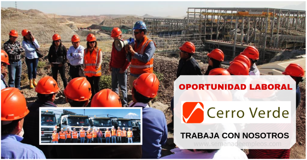 En la actualidad minera cerro verde es uno de los mejores y viene en constante mejoría y crecimiento, como parte de su esfuerzo para seguir creciendo, habré sus puertas ofreciendo nuevos puestos de trabajo para todo aquel profesional talentoso que desea formar parte de la familia, si estas interesado tener en cuenta las siguientes vacantes.