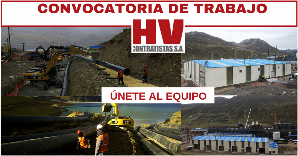 HV CONTRATISTAS S.A. en esta oportunidad ofrece nuevos vacantes de trabajo para ayudar el crecimiento personal y profesional de nuevos talentos que desean formar parte de la empresa, si estas interesado puedes revisar los puestos vigentes.