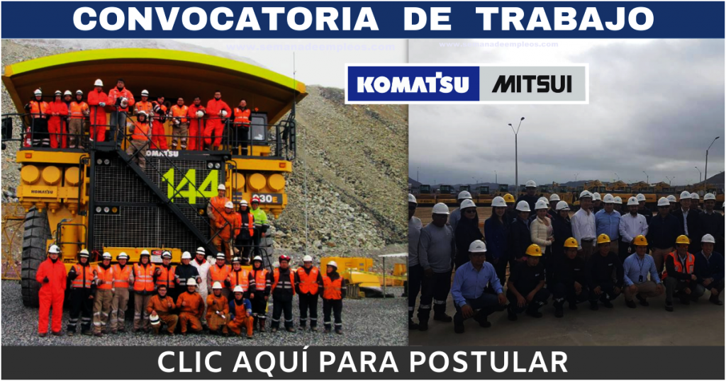 Si estas interesado en ser parte de KOMATSU MITSUI, puedes aprovechar esta convocatoria revisando la lista de vacantes, conoce mas desde: Aplicar aquí.
