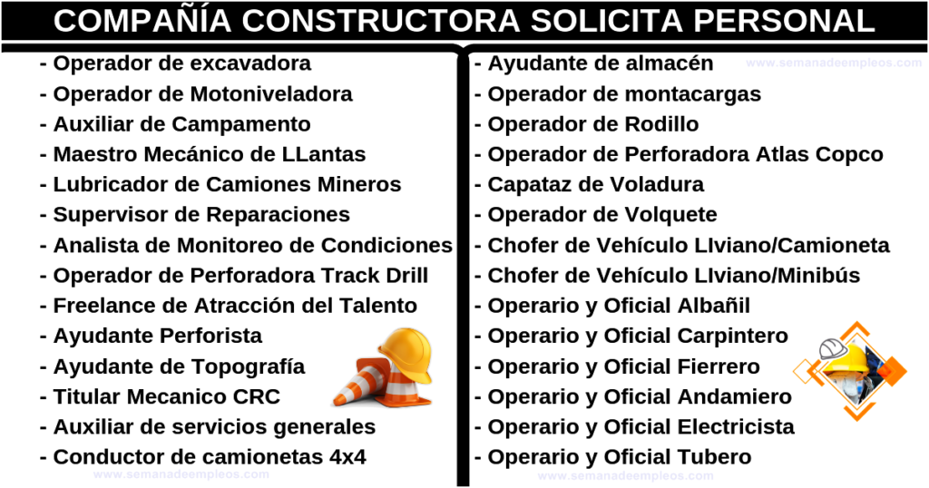 - Trabajos en Construcción Civil: Vacantes Para Albañiles, Ayudantes, Operarios y Otros