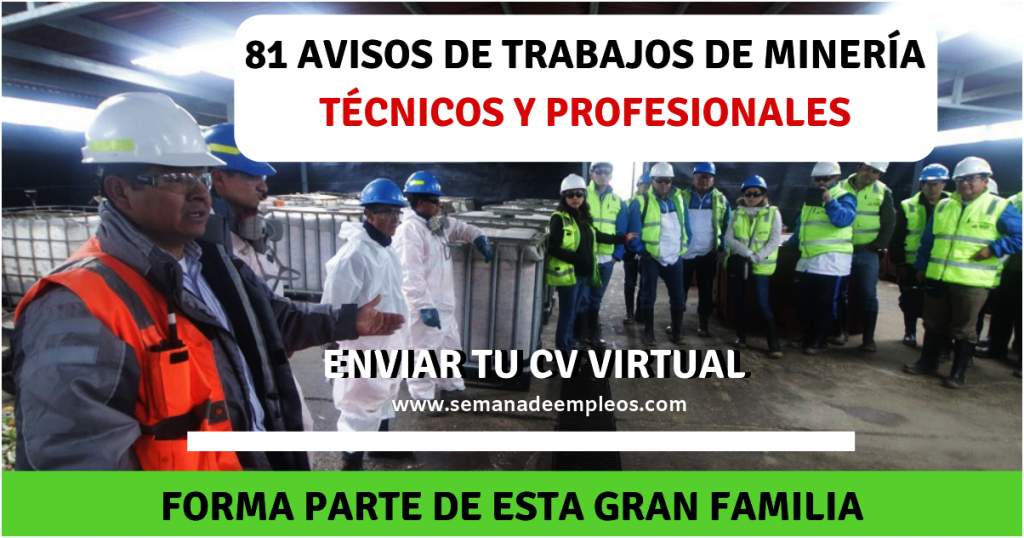 Hoy contamos con algunas vacantes en diferentes compañias mineras que quieren personal ya sea técnicos como profesionales, si te gusta el mundo del sector minero, hoy puede ser tu dia de suerte ya que una de estas vacantes laborales puede ser tuyo, te recomendamos que veas toda la información y los requisitos de la lista de puestos para luego aplicar por una de ellas.
