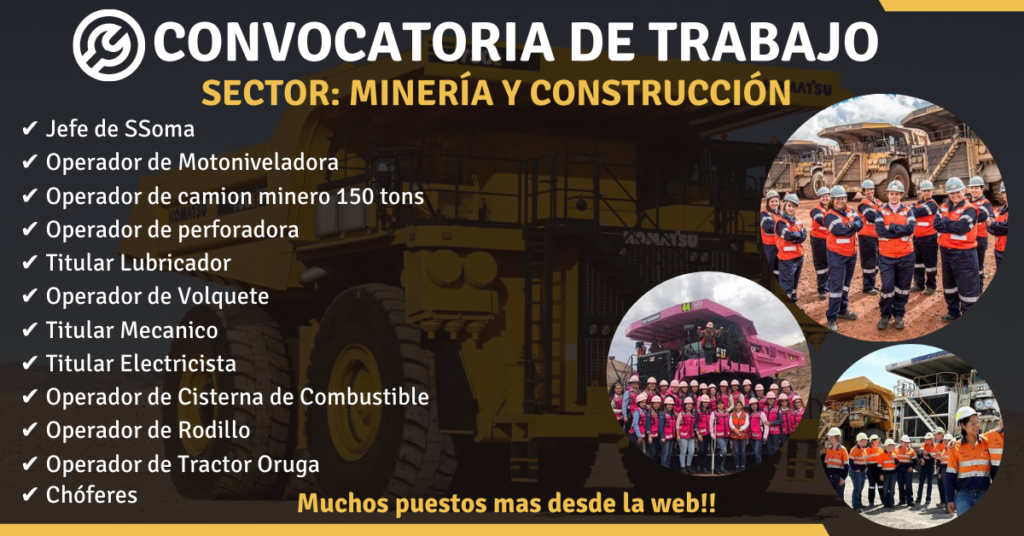 Hoy tienes la oportunidad de formar parte de una compañía de gran prestigio y contratista general, brinda sus servicios a los sectores de minería, construcción y otros. Actualmente cuenta con mas de 28 años de trayectoria en el mercado y su organización solida les permite seguir creciendo cada día para ayudar al desarrollo del país.